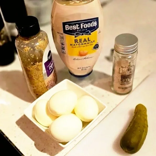 Hard‑Boiled Eggs (6): The classic base — firm whites that hold their shape and creamy yolks ready to be transformed into a rich, flavorful filling.