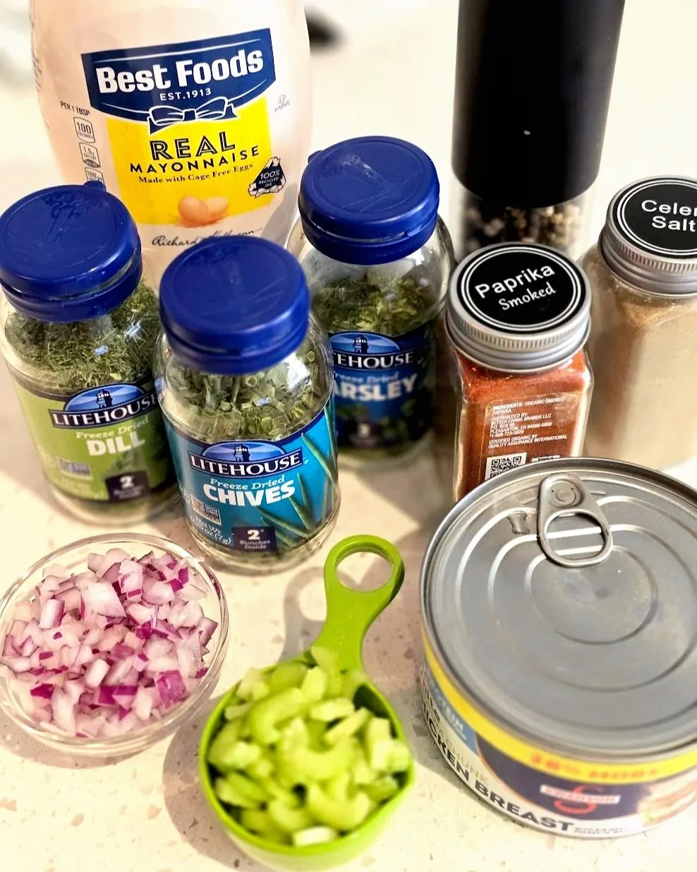 Diced Celery (1/4 cup) and Diced Red Onion (1/4 cup): These bring crisp texture and fresh flavor.